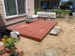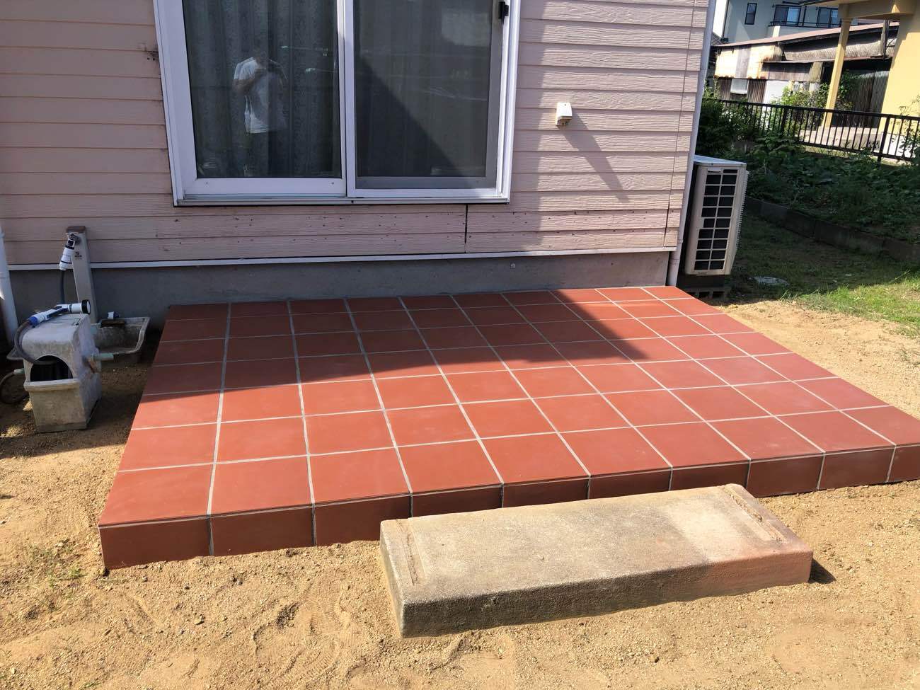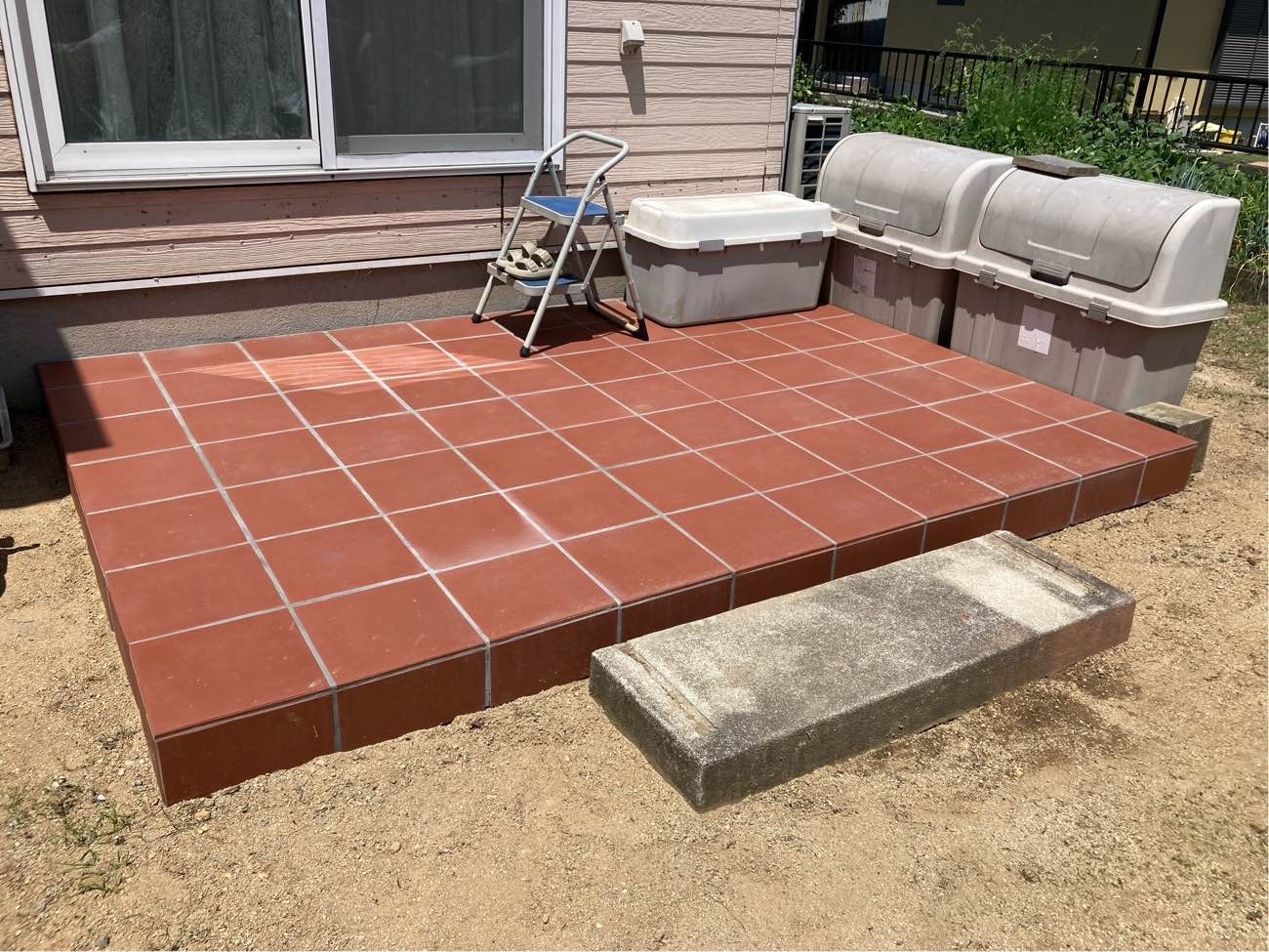 | ご提案のポイント | ウッドデッキを撤去し、コンクリートでの土間打ちとタイル(テラコッタ)での施工をご提案いたしました。 |