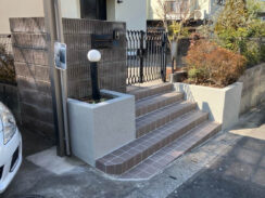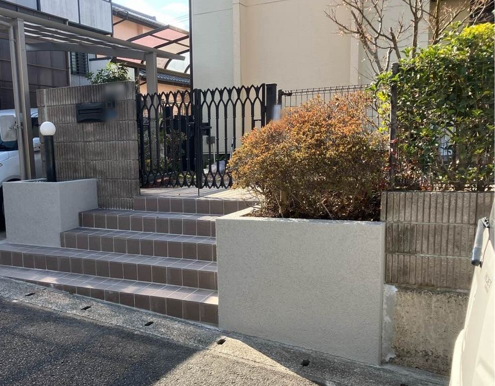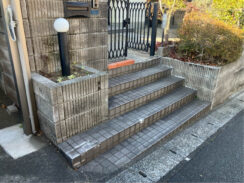 | お客様の夢・要望 | 玄関ポーチの先端、各所タイルの浮き剥がれ等がありました。 また経年劣化で土間タイル・両サイドの植え込みのブロック等の汚れも 気になったため相談しました。 |