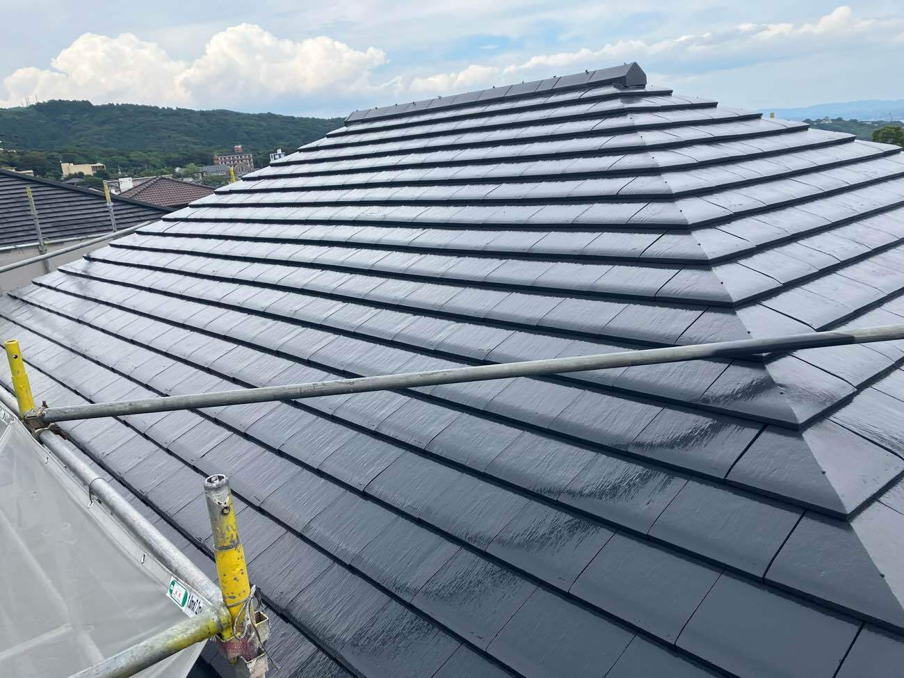 | ご提案のポイント | 外壁塗装は一部のみの塗装だったため、残りの部分に溶け込む色をダイナミックトップで選択いたしました。 当初は外壁の塗装のみの予定だったが、屋根も気になっていたようなので、 工事開始前に屋根塗装もご提案いたしました。 |
