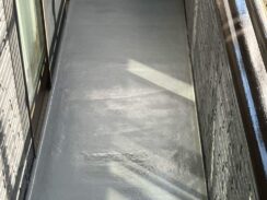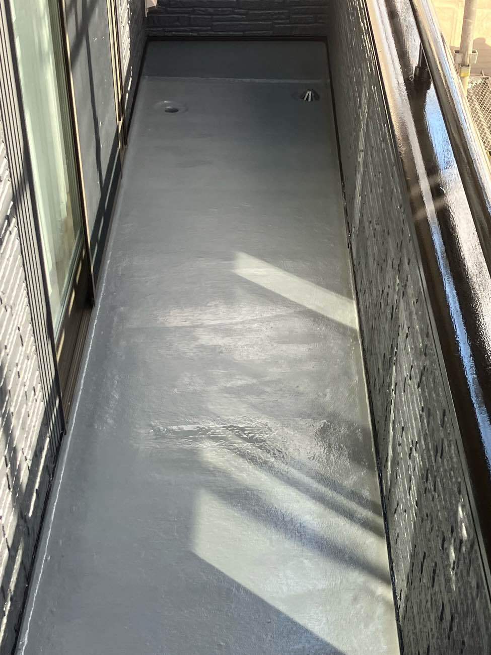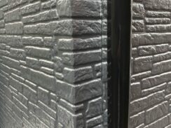 | ご提案のポイント | お施主様のご要望通り、今はやりのグレーを基調にして濃いめの色をご提案いたしました。 アクセントをつけるためベランダ面のみ色をかえています。 |