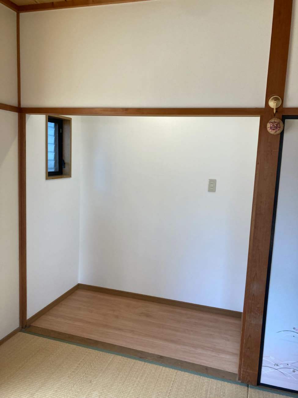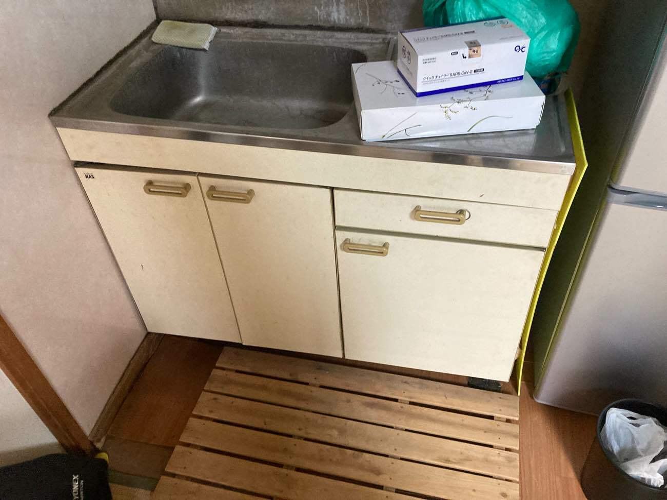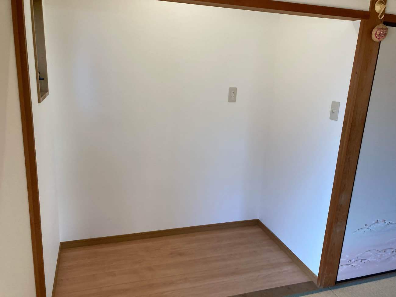| ご提案のポイント | ミニキッチンから長年水漏れをしており、その影響で床が落ちていました。 キッチンは使ってないので撤去し、その後はまだ使い道が決まってないので フローリング・クロスで仕上げました。 |